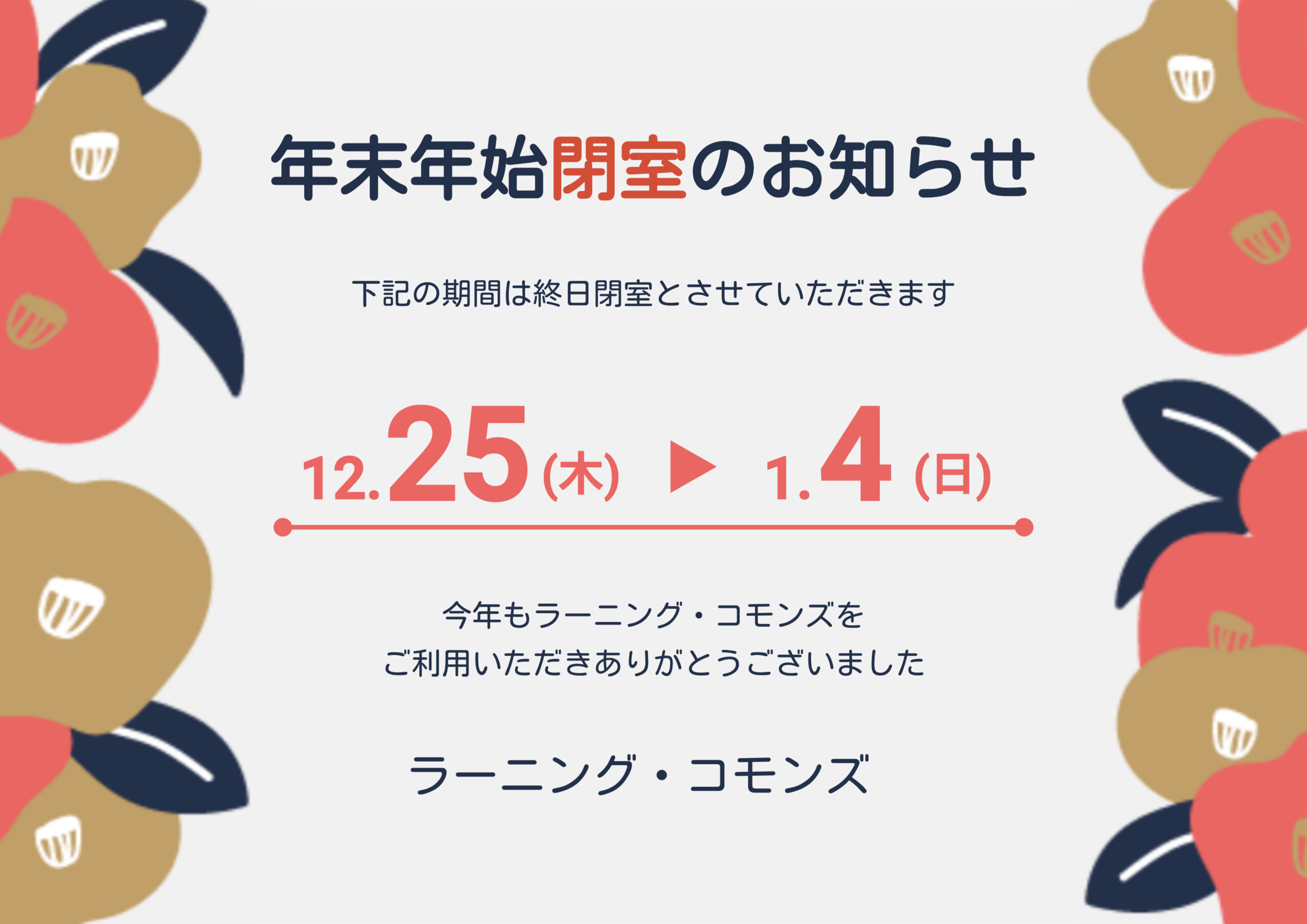 ラーニング・コモンズ年末年始閉室のお知らせ