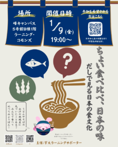 1/9 ちょい食べ比べ、日本の味 〜だしで見る日本の食文化〜を開催します!