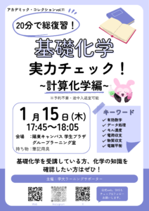 1/15 アカデミックコレクション 20分で総復習!基礎化学実力チェック計算化学編を開催します!