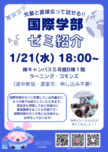 1/21 国際学部国際学科ゼミ紹介イベントを開催します!