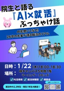 ★ 院生と語る「AI×就活」ぶっちゃけ話開催のお知らせ ★