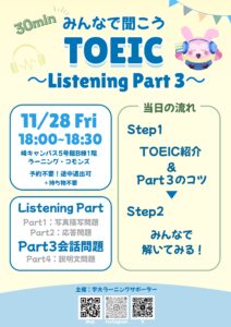 11/28 TOEICリスニングpart3勉強会を開催します!