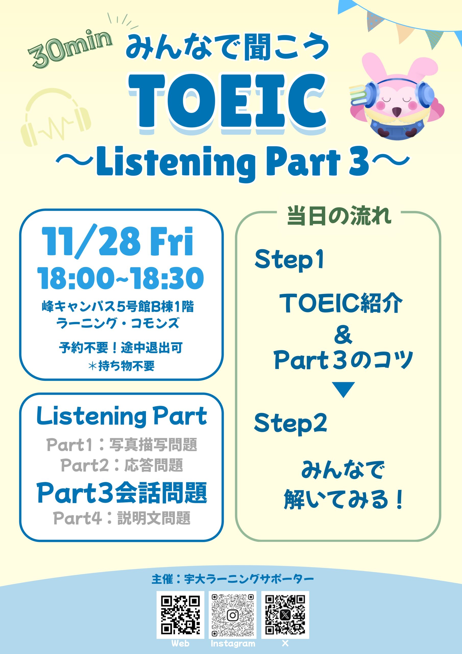 今回はリスニングの中でも対策しやすいPart3に特化したイベントを行います。